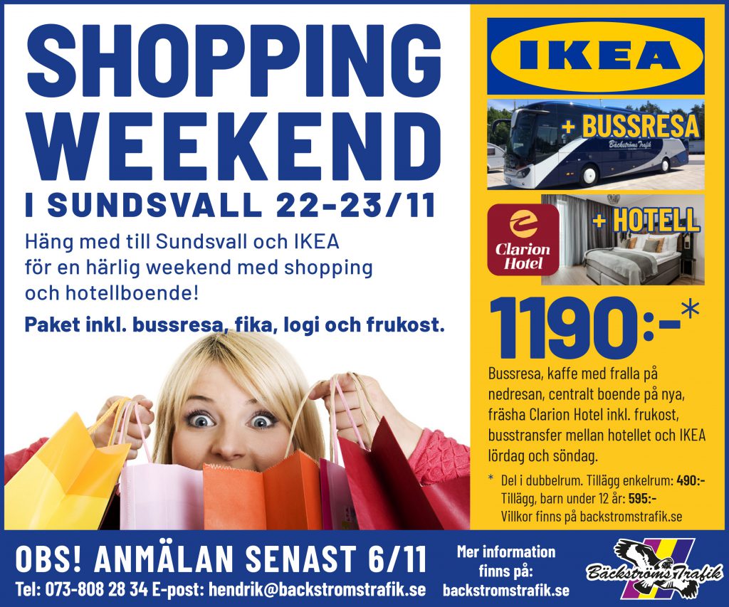 Häng med på våran klassiker till Ikea och Birsta köpcentrum. Paket med bussresa och övernattning den 22-23 November